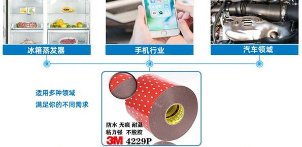 3M膠帶廣泛應用于電腦、手機、通訊、家用電器、視聽設備、汽車等產品中,應根據應用的產品及環境需要選擇,可參考以下說明